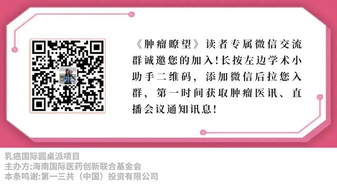 江泽飞教授:感谢肿瘤瞭望一直以来对CSCO年会的支持。我们参与的国际研究可以追溯到早年的HERA研究、CLEOPATRA研究,随着抗HER2 ADC T-DXd的DESTINY-Breast系列兴起,我们也非常有幸地作为中国学者参与到方案的设计和讨论中。