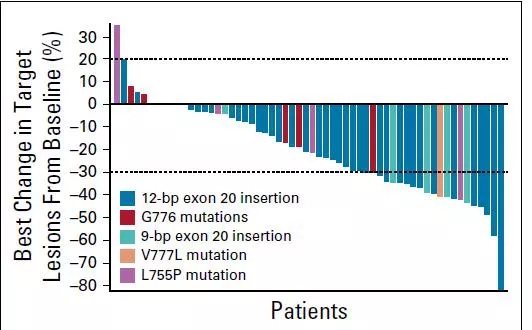 HER2突变约占肺癌驱动突变的1%-4%,尽管目前几款泛HER家族的TKI类药物上市,但这几款药物对HER2突变的患者疗效较差,